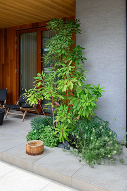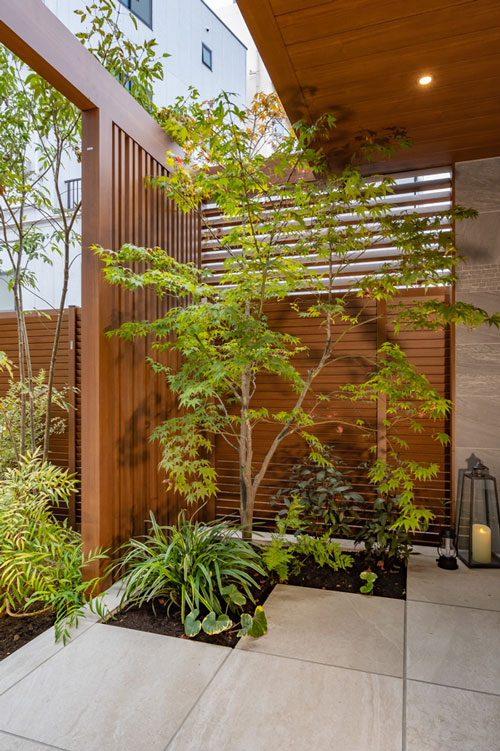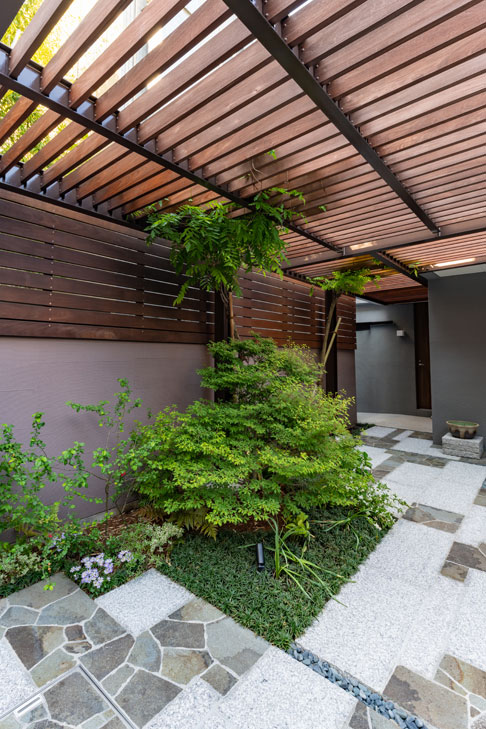 また、植栽そのものも、ただ樹木を並べるだけでは終わりません。色、質感、高さ、広がり、そして季節。一本一本の個性を引き出しながら、空間全体が響き合うように組み合わせていきます。まるで“生け花”のように構成する。そこには、見るたびに発見のある「品のある美しさ」が宿ります。
