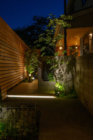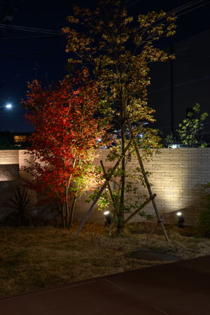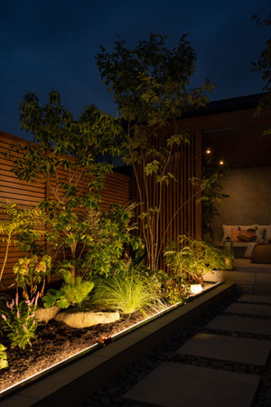 光が木々を照らし、影が生まれ、風に揺れる葉が光をまとって踊る。私たちは「ライティング」と「植栽」を組み合わせることで、昼と夜で異なる表情を持つ、「時間とともに輝く庭」を創り上げます。