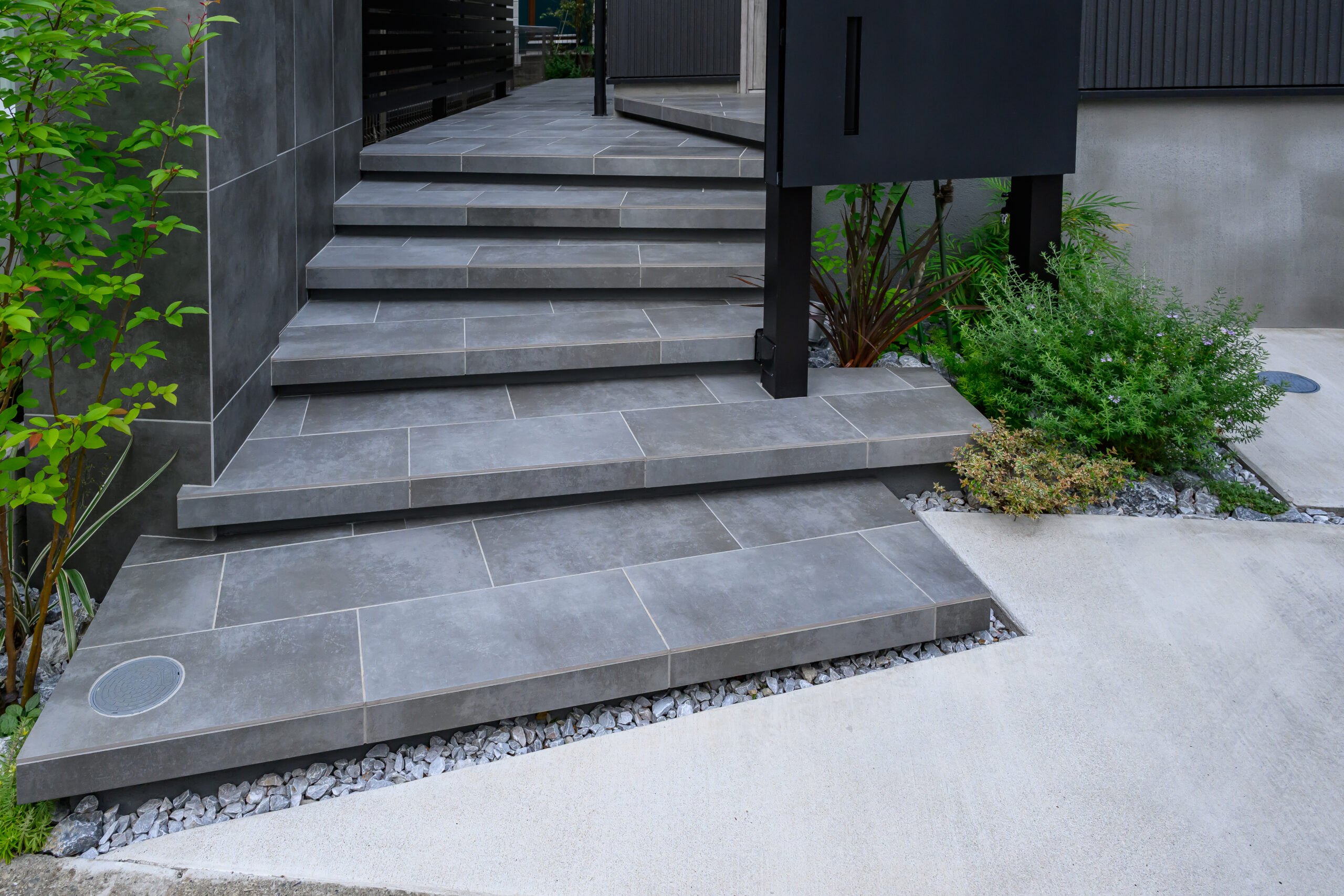 • 背の高い壁やフェンスを用いることで、外部からの視線を遮断し、居住空間のプライバシーをしっかりと確保しています。