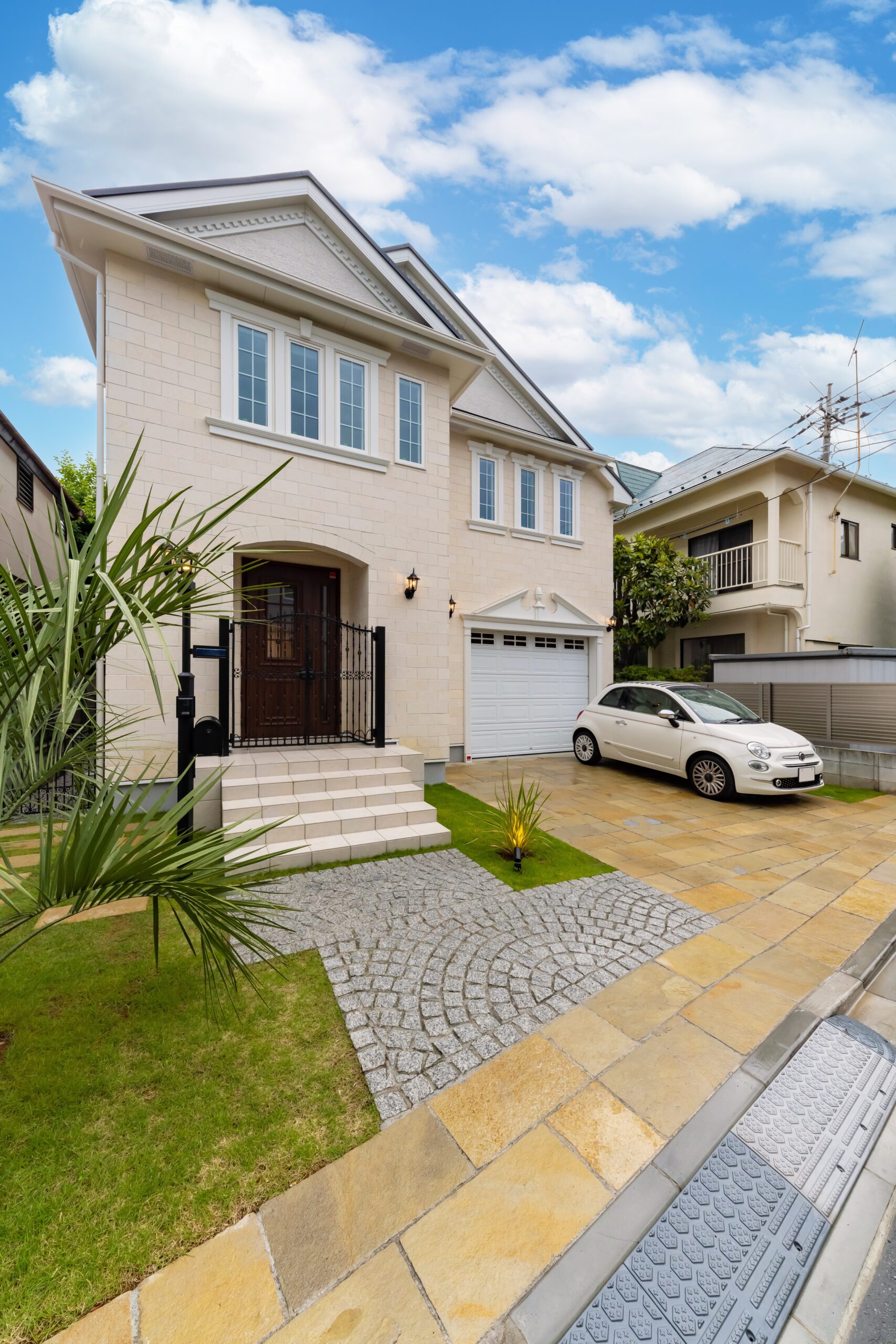 • コンセプトは「ヨーロピアンな建物に見合う地中海スタイルのエクステリア」として、駐車場とアプローチまわりをご提案いたしました。