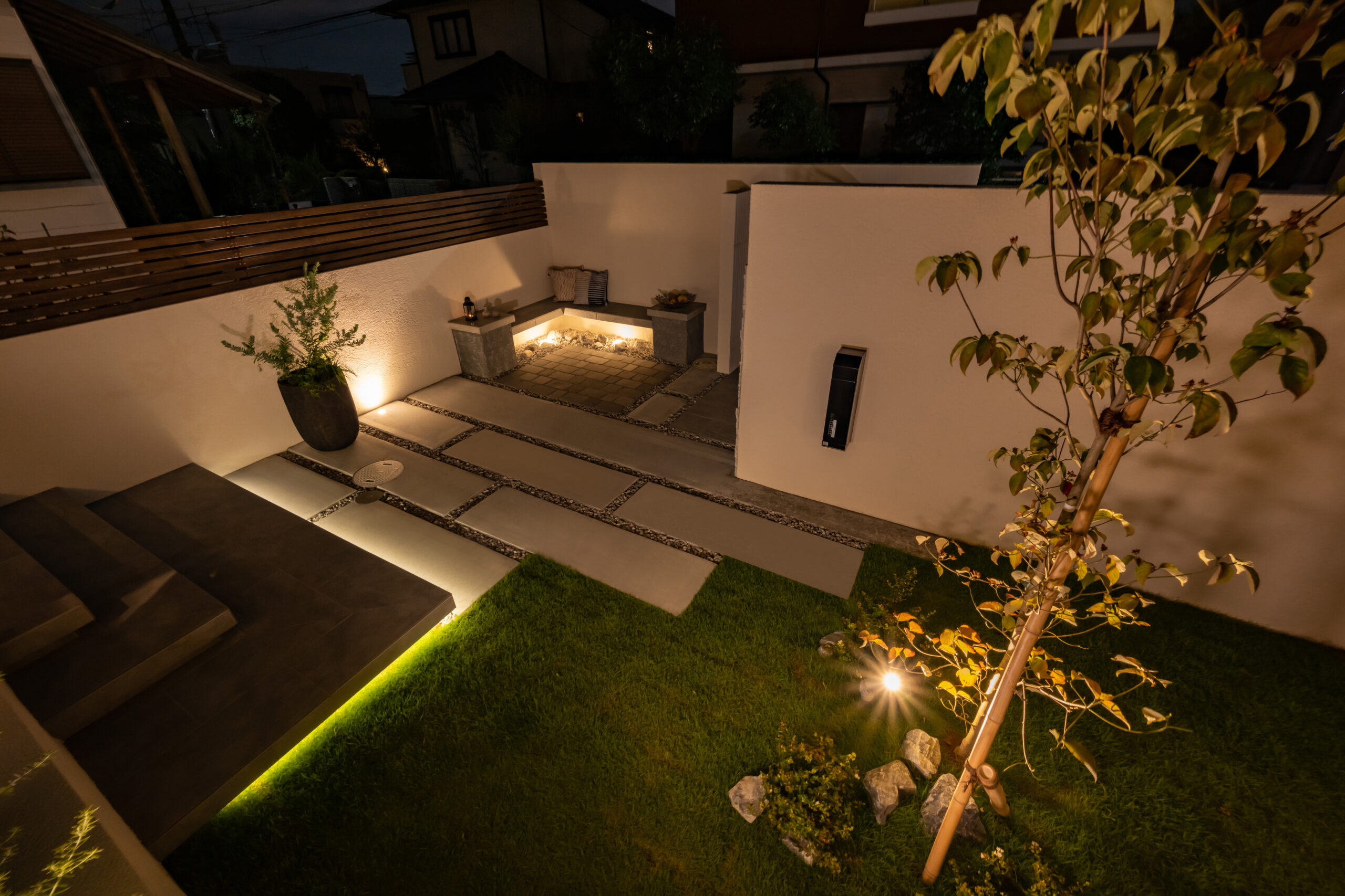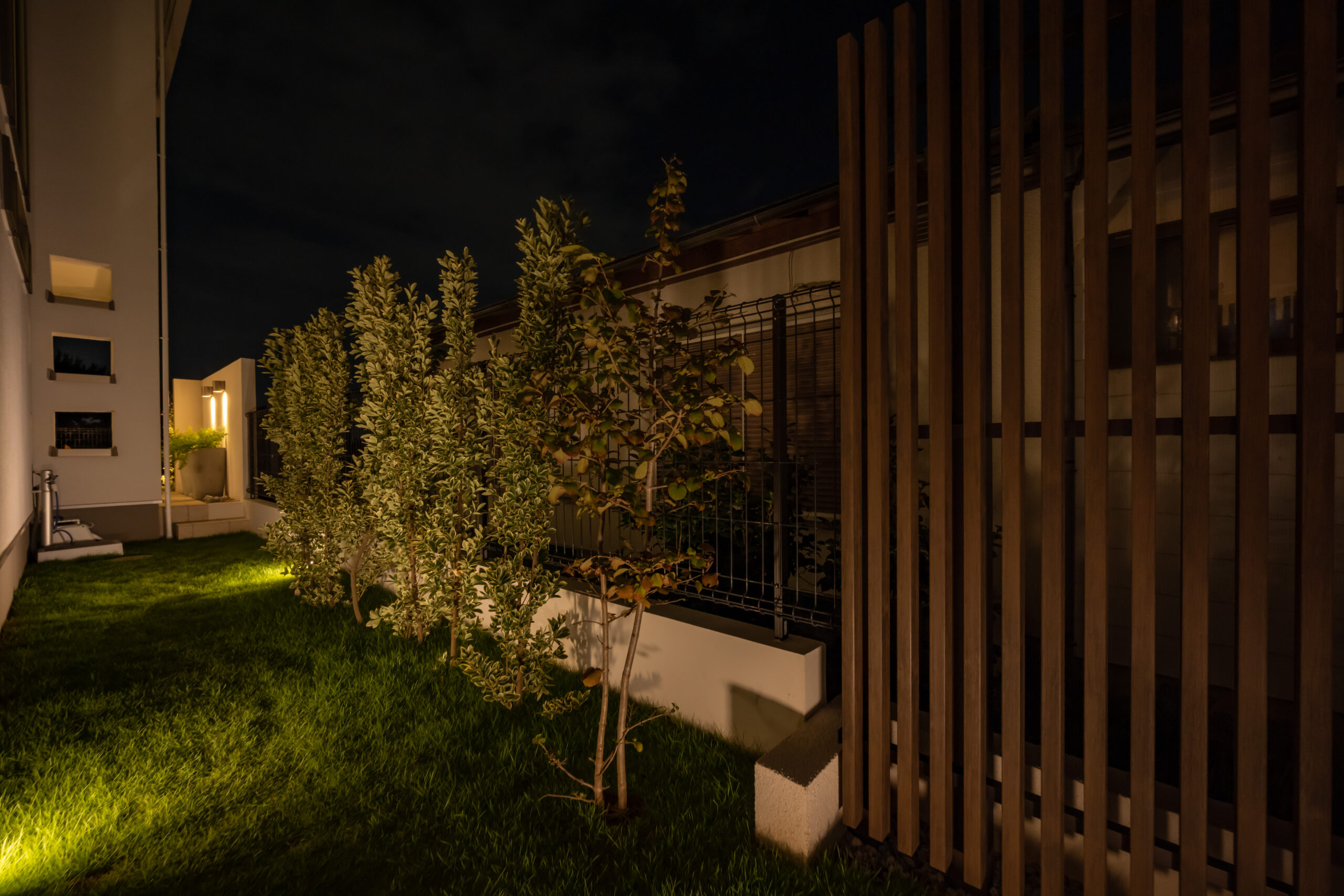 光に包まれる、夜も楽しめるエクステリアガーデン